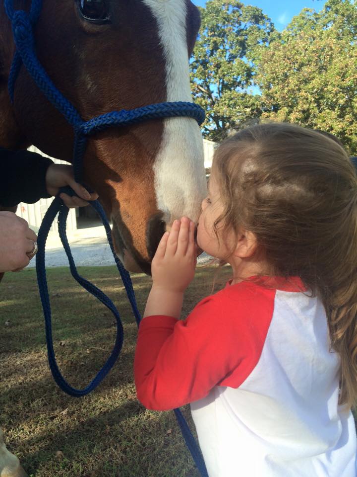 He lets her just dote all over him and she is smitten that she has a “big girl” horse like mommy and Papaw.