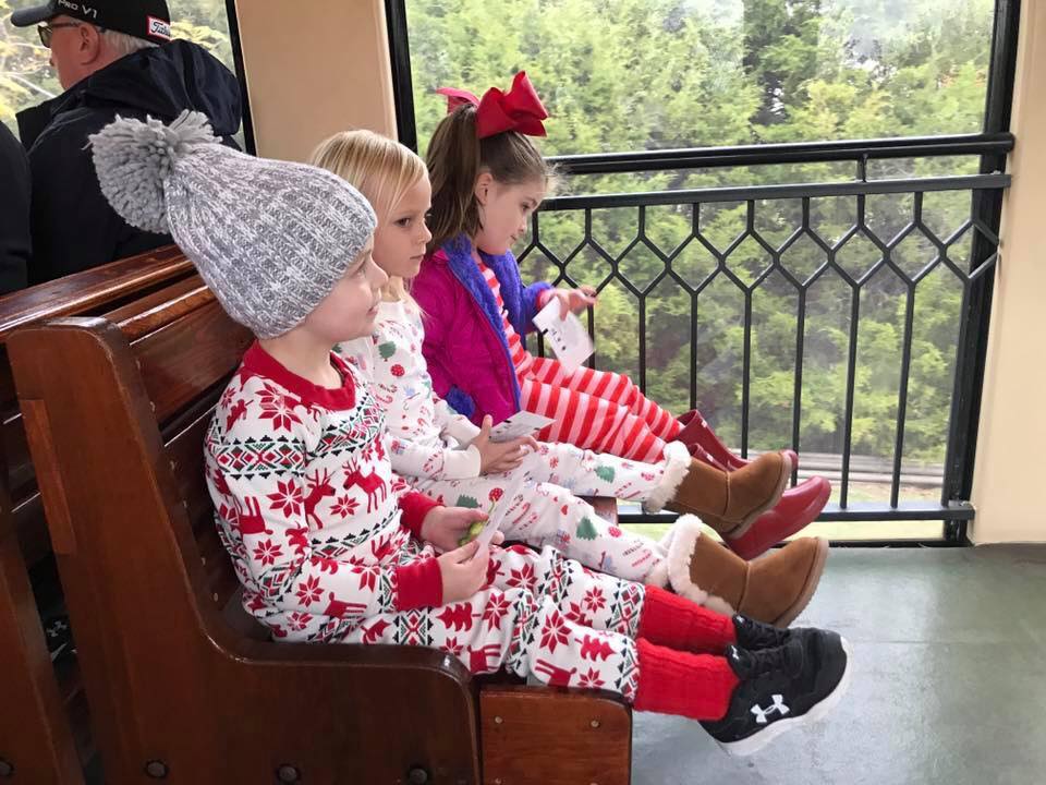 We boarded our train in time and the kids were so excited. We got really good seats up towards the front of the car so the kids had plenty of room and a great view. The conductor punched their tickets as well. Paisley wondered why hers didn’t spell anything. HA!