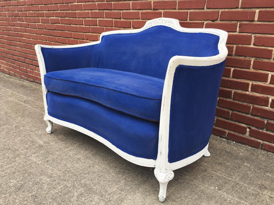 I’ve been dreaming of a denim couch for some time and am so proud of how my little settee turned out. I plan to add cow hair pillows to add western flair and detail.