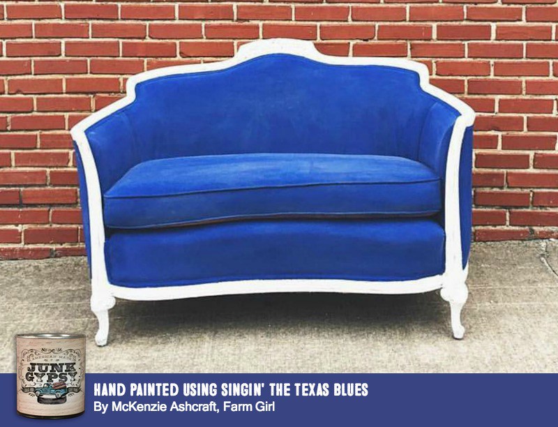 I own Farm Girl in Ada, OK and we are retailers for Junk Gypsy™ Paint. This project was a little intimidating at first but ended up being so easy and fun! I want to paint everything with upholstery now. I was so overwhelmed with the response of yesterday’s project post that I wanted to blog and share how I did it.