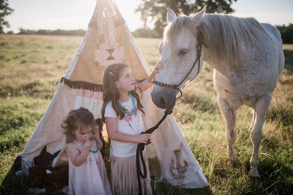 My friend Aubrey outdid herself again! I waited on getting Paisley’s 5 year pictures done so this summer we could do her 5 year, Scout’s 2 year, and sister pictures all in one. I wanted some with their teepee and horse to go up in their new room I’m working on. I loved how they turned out and Copper even sneaked in them.